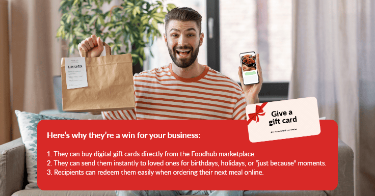 Partner with Foodhub and start your free trial today to activate digital gift cards for your restaurant. Make this holiday season your most profitable one yet, one gift card at a time.