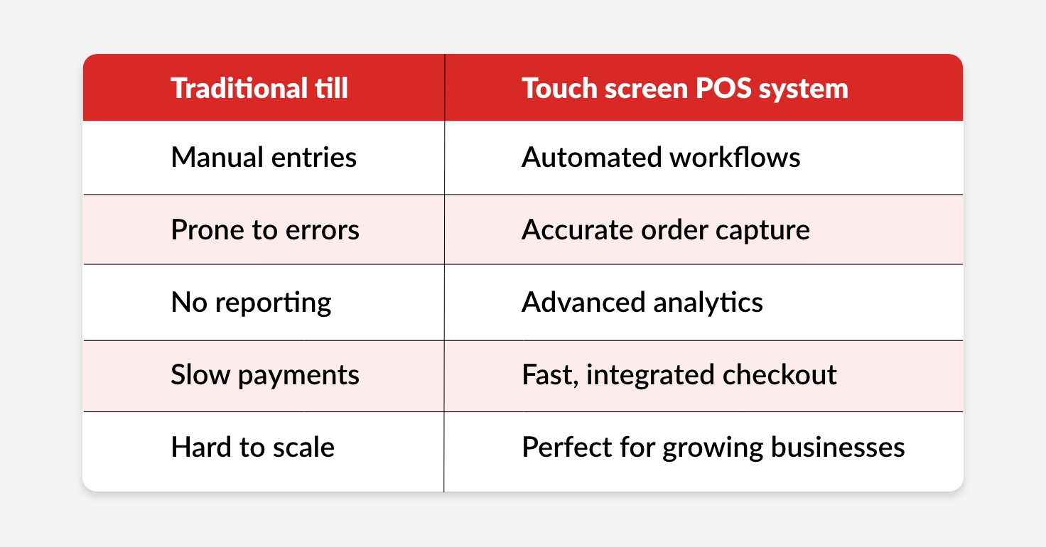Traditional tills slow businesses down. Touch screen POS systems speed them up.
