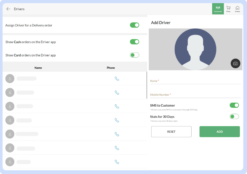 Easily add new delivery drivers into the system. Enables real-time assignment and tracking of deliveries from day one.