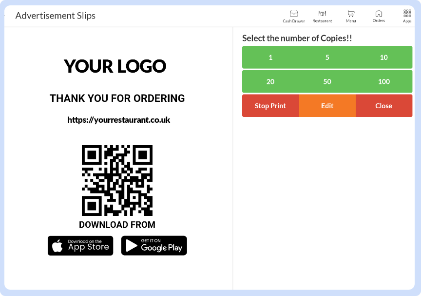 Print custom promotional messages on receipts. A subtle way to encourage repeat business or promote upcoming deals.