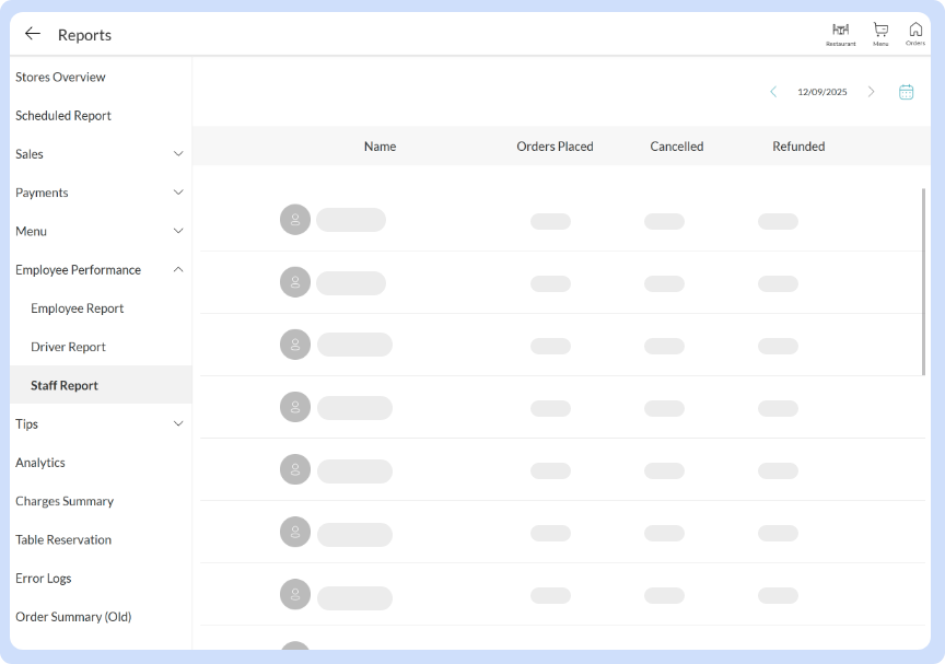 Generate detailed reports on staff activities including orders handled, sales achieved, and shift performance. Gain insights that help with evaluations, rewards, and workforce planning.