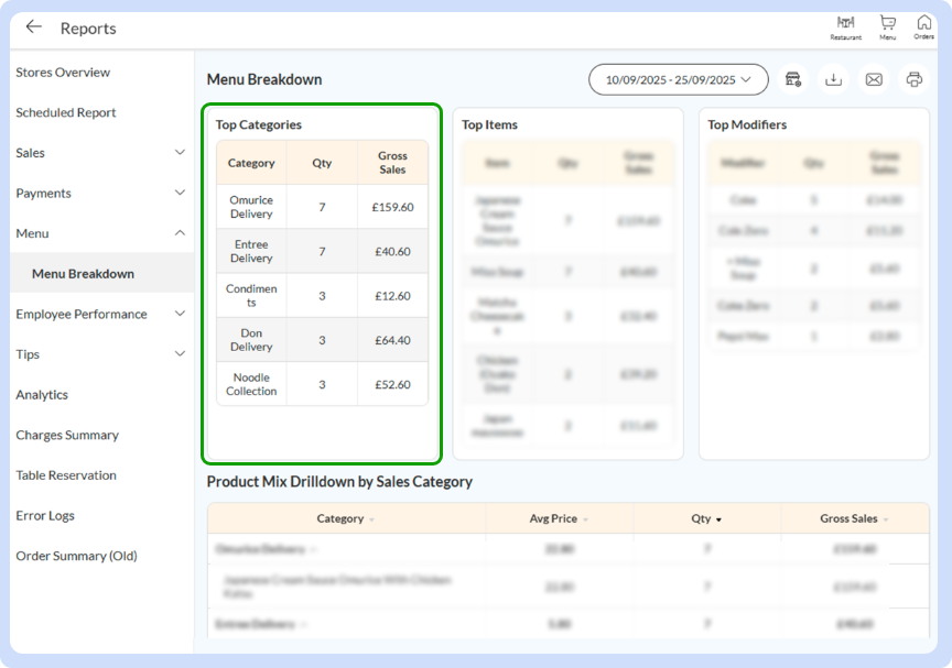 See which menu sections customers love the most
