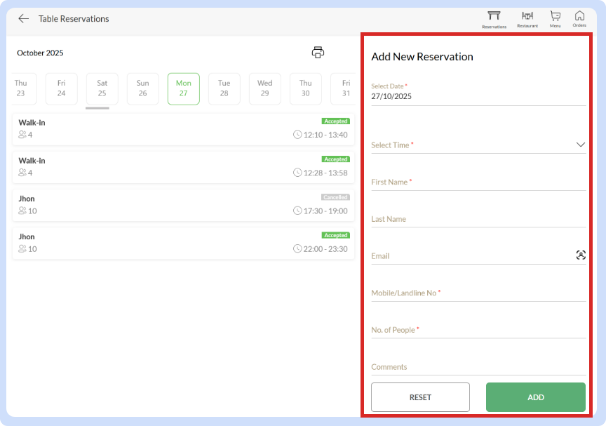 Create a booking in the system for customers who call or visit in person. Ensures accurate tracking of all reservations.