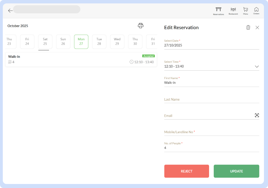 Confirm, decline, or modify reservations easily. Keeps seating organised and customers informed.